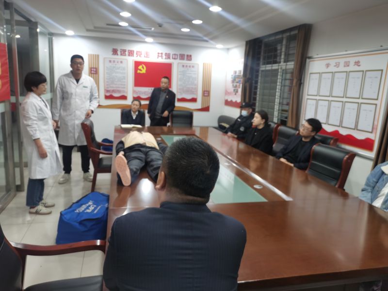 此次活动主要由理论讲解和现场实操两部分组成。涞水县医院医护人员为支行员工介绍了急性心肌梗死和脑梗死的前期迹象,讲解了心肺复苏和海姆立克急救法的原理和具体操作流程。随后,开展现场模拟演练,医护人员对大家在抢救演练实操中的姿势、力度逐个示范、纠正。