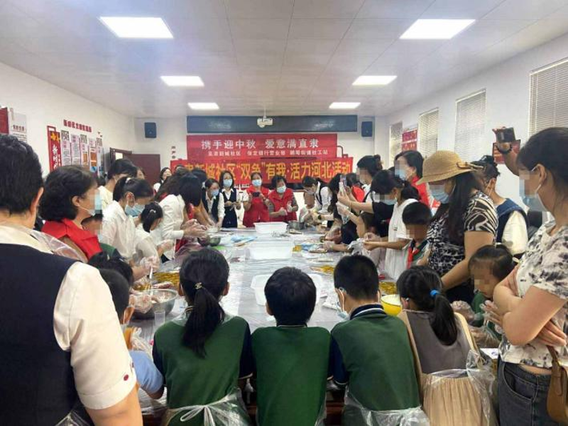 2023年9月16日上午,保定银行营业部、直隶新城社区、朝阳街道社工站、直隶新城社区社会组织联合会联合举办了“携手迎中秋 爱意满直隶”中秋主题活动。活动中,营业部员工首先向小朋友们讲解了中秋节的由来,让大家感受到这份节日的意义;随后向大家介绍反假币金融知识,通过鉴别假币小技巧、案例讲解等方式,生动介绍了金融小知识。之后,参加者分成几组,共同制作精美的冰皮月饼。揉冰皮、包馅料、压模具……在欢声笑语中,一个个精美的月饼在“流水线”工艺下成型了,用包装盒给月饼“穿”上一件节日“盛装”。最后,营业部工作人员与直隶新城社区社会组织联合会联合工作人员共同将月饼送到社区困难老人家中,让老人们也能享受节日的温馨与喜悦。