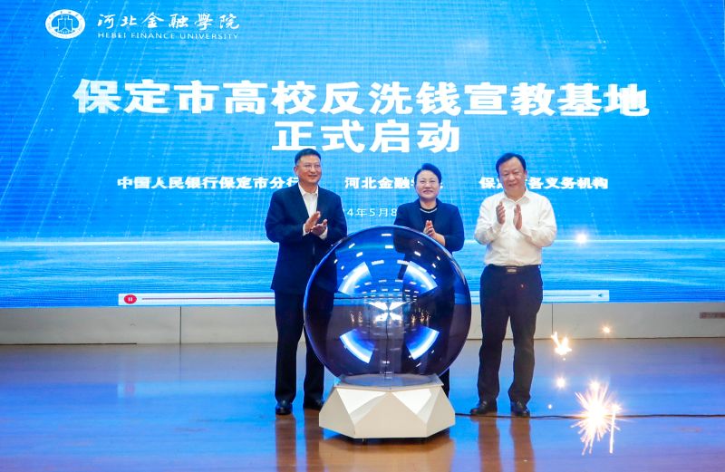 为进一步加强校园反洗钱文化建设,充分发挥反洗钱高校宣教平台的作用,夯实反洗钱社会基础,5月8日,保定市高校反洗钱宣教基地揭牌仪式在河北金融学院成功举办。河北金融学院校长杨伟坤,党委常委、副校长朱连才;中国人民银行保定市分行党委书记、行长郭宁,党委委员、副行长陈立房;保定市公安局经侦支队政委许子贤,保定市人民检察院第四检察部主任聂红伟,保定市中级人民法院法官赵炎;保定银行党委副书记、董事长李建树,党委副书记、行长陈桂兰,副行长王震出席启动仪式。