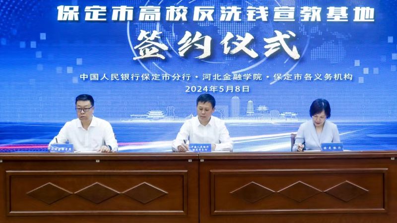 现场签署《保定市高校反洗钱宣教基地三方协议书》