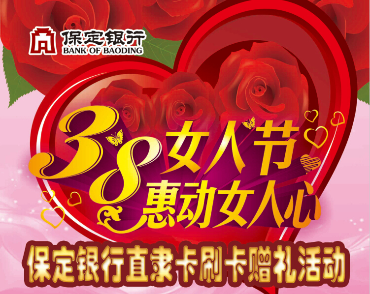 三八女人节,惠动女人心。活动期间持保定银行直隶卡在保百购物广场、保定百货大楼、保百购物家园、北国商城、北国先天下等各大卖场可参与直隶卡刷卡赠礼活动,刷卡消费满指定金额可获赠升级好礼,数量有限,先到先得,精彩活动期待您的参与,详情见各大卖场宣传海报。